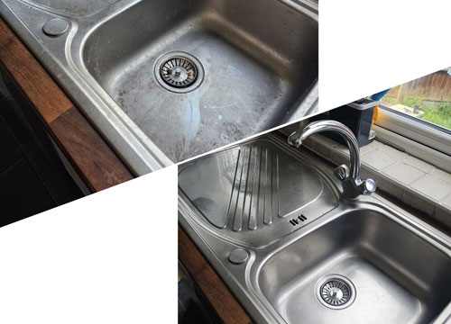 - Clean sink and polish taps